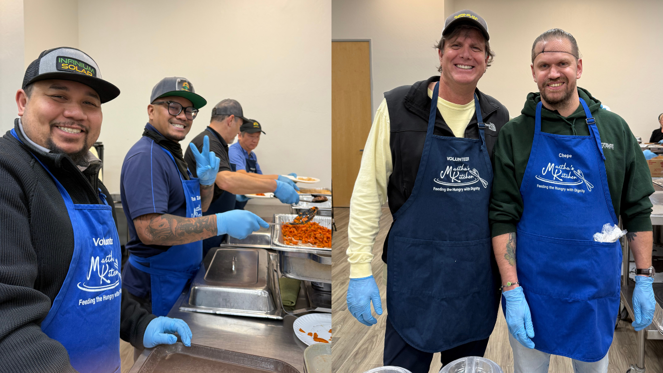 In closing, we want to extend our heartfelt thanks to Martha’s Kitchen for welcoming our team and for the critical work they do to feed our neighbors in need. This experience has strengthened our commitment to continue serving our community in any way we can. Going forward, the Infinium Solar, Roofing and Electric team remains dedicated to supporting local initiatives and volunteering our time and energy to uplift others. Our day at Martha’s Kitchen was not a one-time event but part of an ongoing promise. As our company grows, so will our efforts to give back. Together, as a team and as members of the community, we will keep striving to make a positive difference – one meal, one neighbor, one act of service at a time.